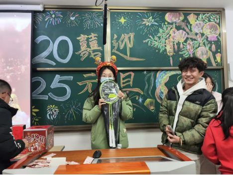 随后,大家前往346教室签到并领取游戏卡片。游戏类型多种多样:“手脚并用”、“吹乒乓球”、“不要做挑战”、“螃蟹护蛋”等,不仅考验参与者的身体素质,更激发了大家的团队合作精神与竞争意识。每个游戏教室都挂满了彩带和气球,大家欢声笑语,其乐融融,教室内外都洋溢着元旦的喜庆和温馨。