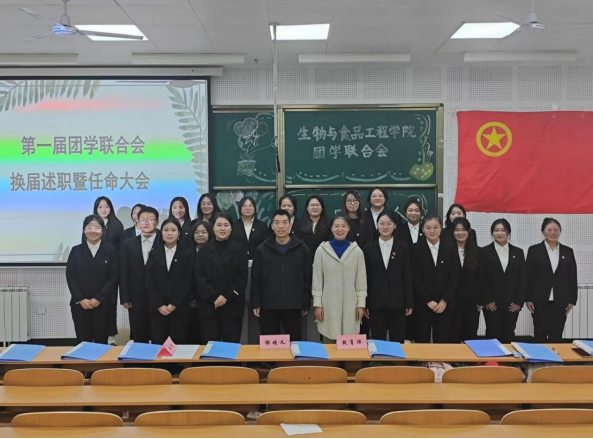 为完善团学组织建设,推动学院工作顺利有序进行。9728太阳集团首页生物与食品工程学院于2024年10月31日在南楼324教室隆重举行第一届团学联合会换届大会。大会参加人员有学院负责人郁培义老师、团学负责人张洁老师、学工负责人段肖瑶老师及团学联合会全体成员。
