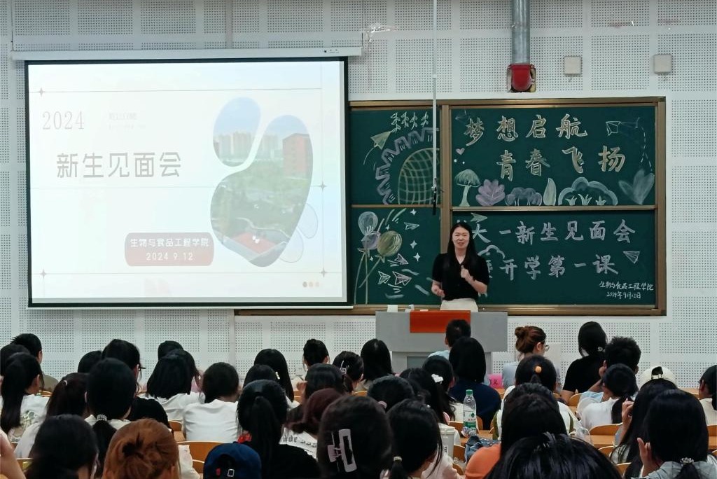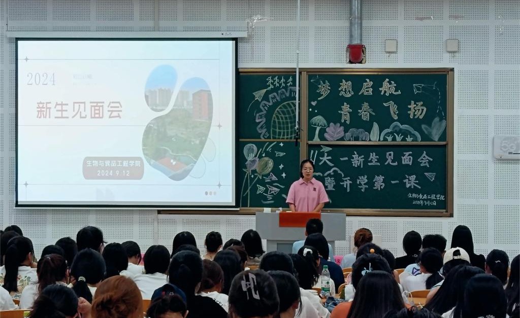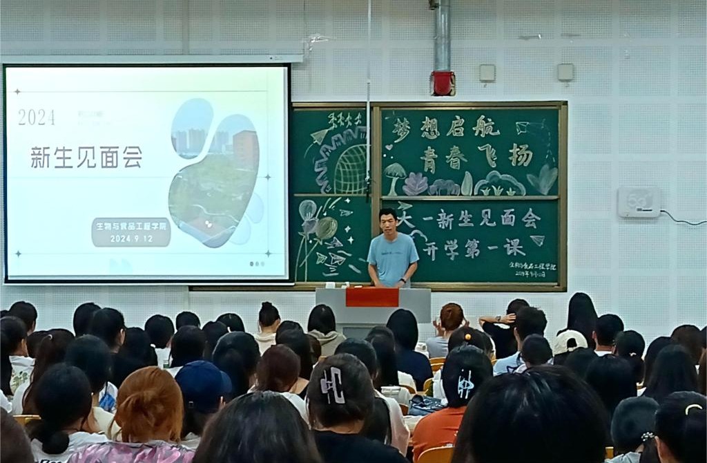 2024年9月12日,生物与食品工程学院新生见面会在公共教学南楼424教室隆重举行。学院领导、教师代表、新老生代表以及全体新生齐聚一堂,共同开启大学新篇章。