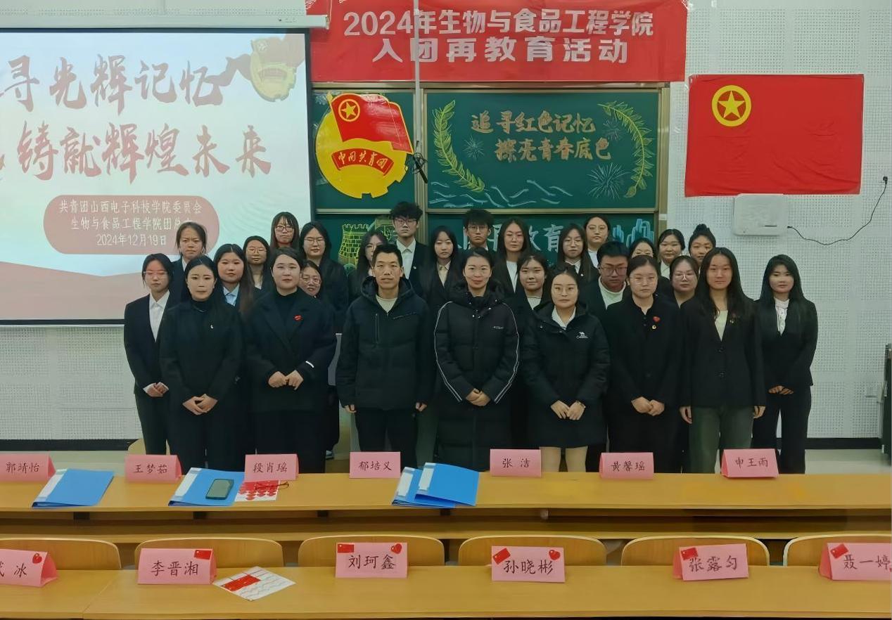 为深化全体团员对共青团组织的认知,增强其身份认同感与责任感,生物与食品工程学院于12月19日晚19:00,在南楼426室成功举办了主题为“追寻红色记忆,擦亮青春底色”的入团再教育活动。活动面向全体大一新生和团学成员,生物与食品工程学院负责人郁培义老师、团学干事张洁老师、学工干事段肖瑶老师、新生辅导员王梦茹老师出席活动。