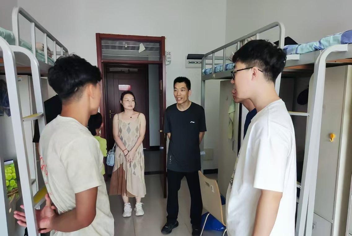 学院负责人郁培义带队到迎新现场及寝室走访慰问,与前来报到的新生及家长亲切交流,并叮嘱辅导员和志愿者们要根据迎新现场实际情况做好灵活应对,及时回应家长和学生诉求,全力提供周到热情的服务。