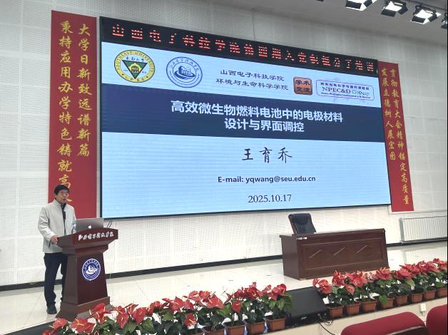 东南大学王育乔教授作“高效微生物燃料电池中的电极材料设计与界面调控”学术报告