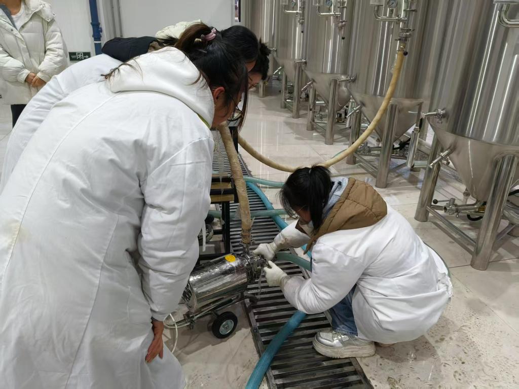 在实习期间,学生们了解了啤酒生产的基本原料和工艺流程。从原料的准备,如大麦芽、啤酒花、水和酵母的质量控制,到糖化、发酵、过滤、储存等各个环节,学生们都进行了细致的观察和学习。在学习过程中,老师详细介绍了每个环节的关键技术和操作要点,学生们也积极提问,与老师进行了深入的交流。除了实际操作外,学生们还参与了啤酒的品质控制工作。他们学习了如何对原料、糖化产物和发酵产物进行检测和评估,了解了啤酒品质控制的基本流程和标准。通过参与样品的分析和仪器的操作,学生们进一步巩固和深化了专业知识。实习结束后,学生们纷纷表示,通过此次实践课程,他们不仅对啤酒生产工作有了深层次的认识,还增强了对基本技能、基本素质和实践能力的掌握。他们深刻感受到了啤酒生产的复杂性和细致性,意识到每个环节都需要精确控制,任何一环出错都可能影响最终的产品质量。