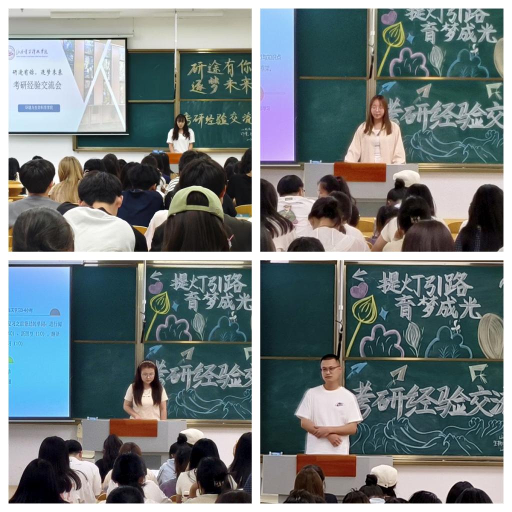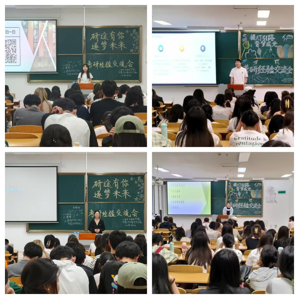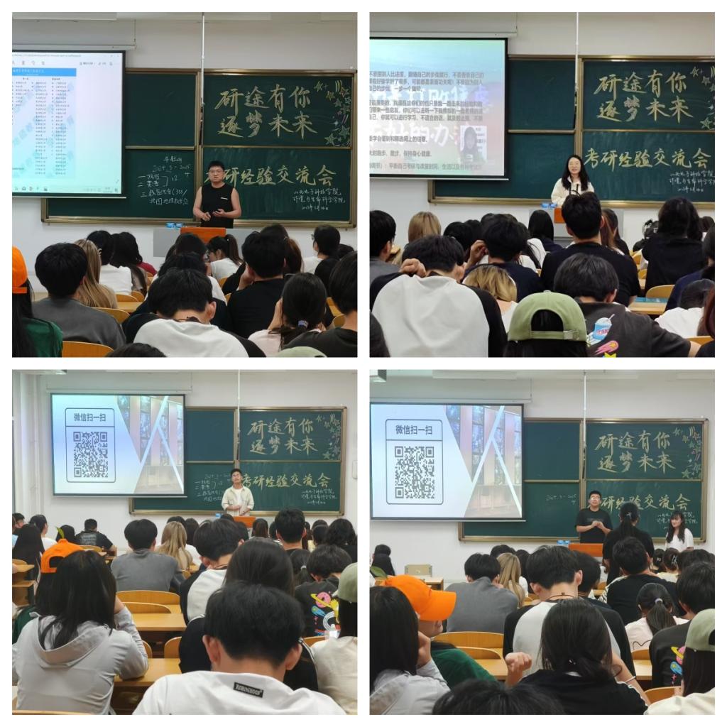 为助力同学们科学规划考研复习、增强备考信心,太阳集团9728于 5月14日19 时在南-111、南-213 教室成功举办了“研途有你·逐梦未来”考研经验分享交流会。此次活动吸引了众多考研上岸的大四学长学姐以及大一至大三有志考研的学生共同参与,现场座无虚席,气氛热烈。