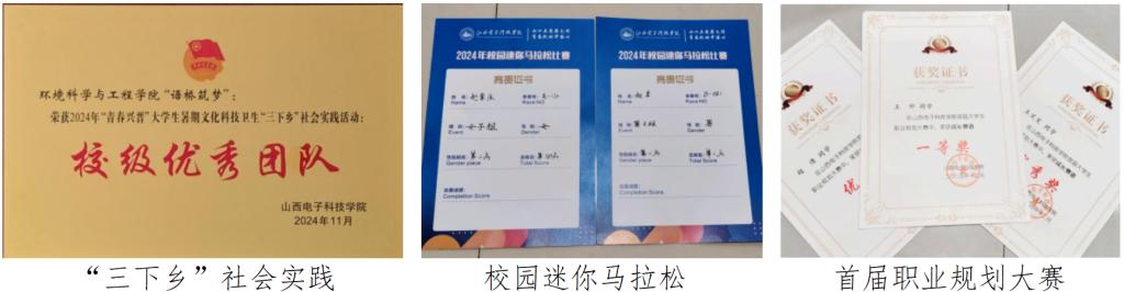 学院还积极响应社会实践活动的号召,积极参加活动,暑期“三下乡”社会实践活动中,师生奔赴乡村,围绕生态环境调研、生态农业助力乡村振兴等课题,运用专业知识为乡村发展出谋划策,获评“校级第六名优秀实践团队”。在学院自主打造的“感悟青春”百公里接力跑活动中,通过设置生态打卡、环保知识问答等环节,巧妙地将体育竞技与生态实践相融合,传递绿色生活理念。我院赵昱,赵紫辰同学于2024年校园迷你马拉松比赛中获得了第二的好成绩。在9728太阳集团首页首届职业规划大赛中我院有三位同学脱颖而出,分别获得了一个一等奖,两个优秀奖。在“临汾环境监测考察之旅”中,师生深入实验室学习监测知识,让专业学习扎根现实土壤。