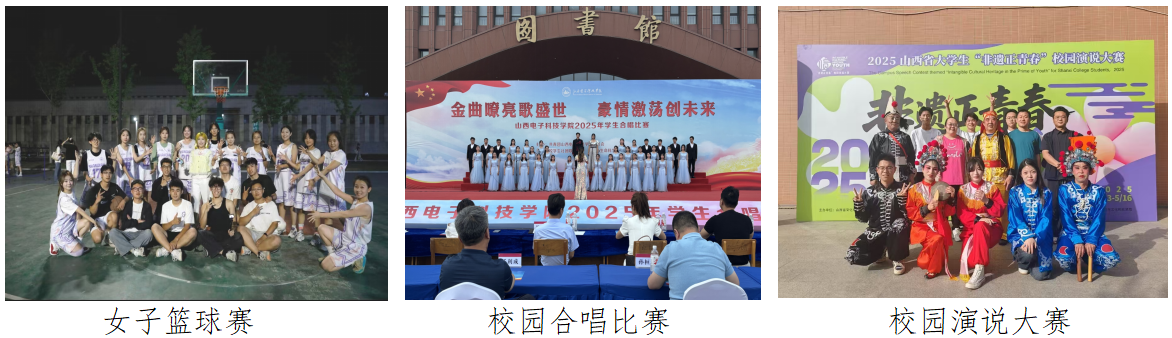 在校园文化活动中,学院师生大放异彩。女篮队员们凭借坚韧不拔的精神和默契的配合,一路过关斩将,勇夺校级冠军,完美诠释了团队协作与拼搏精神。在“金曲嘹亮歌盛世 豪情激荡创未来”校园红歌合唱比赛中,同学们以饱满的情感和铿锵有力的歌声,深情演绎《如愿》和《向光而行》,荣获一等奖。此外,在“非遗正青春”校园演说大赛中,庞世玉同学巧妙结合专业优势,制作文创产品和旅游路线图,荣获省级三等奖,彰显了学院学生的创新思维与文化传承意识。